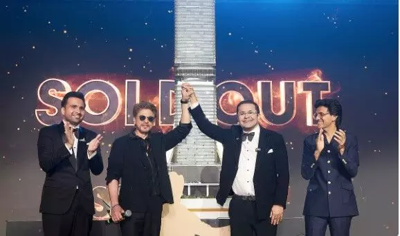 text_fieldsഷാരൂഖ് ഖാന്റെ പേരിൽ ദുബൈയിൽ നിർമിക്കുന്ന വാണിജ്യ കെട്ടിടത്തിന്റെ വിൽപന പ്രഖ്യാപിക്കുന്ന ചടങ്ങിൽ നിന്ന്