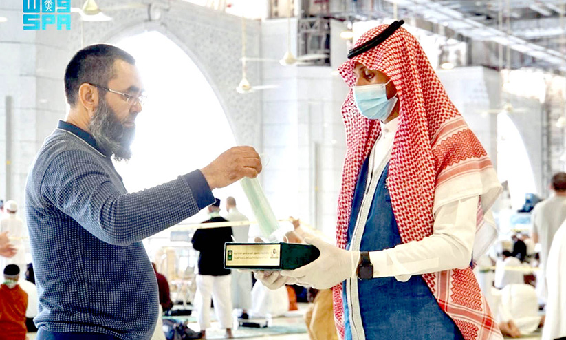 text_fieldsമക്ക ഹറമിൽ മാസ്കുകൾ വിതരണം ചെയ്യുന്നു