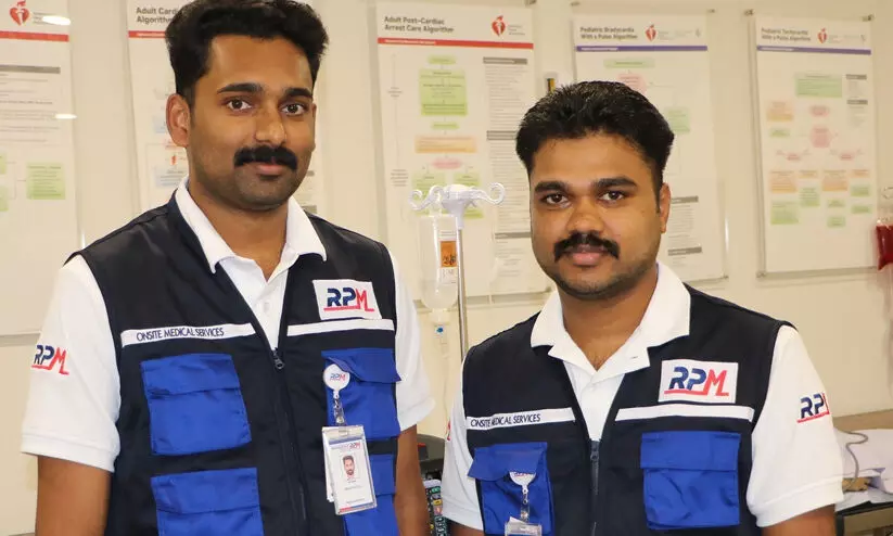 യുവ നഴ്സുമാരായ വയനാട് സ്വദേശി അഭിജിത്ത് ജീസും ചെങ്ങന്നൂർ സ്വദേശി അജീഷ് നെൽസനുമാണ് യുവാവിന് അടിയന്തര ചികിൽസ ലഭ്യമാക്കിയത്. അടുത്തുള്ള സീറ്റിൽ ആരോ ശ്വാസമെടുക്കാൻ ബുദ്ധിമുട്ടുന്നതായി തോന്നിയതോടെയാണ് അഭിജിത്ത് ഇടപെട്ടത്. ചലനമില്ലാതെ കിടക്കുന്നയാളുടെ പൾസ് നോക്കി കിട്ടാതെ വന്നപ്പോൾ ഹൃദയാഘാതം സംഭവിച്ചതാണെന്ന് മനസിലാക്കുകയായിരുന്നുവെന്ന് അഭിജിത്ത് പറയുന്നു. വിമാന ജീവനക്കാരെ വിവരം അറിയിച്ചതോടൊപ്പം സമയം പാഴാക്കാതെ രോഗിക്ക് അഭിജിത്ത് സി.പി.ആറും നൽകി. ഈ സമയം സഹായത്തിനായി അജീഷും ചേർന്നു. ഇരുവരും ചേർന്ന് രണ്ട് റൗണ്ട് സി.പി.ആർ നൽകിയതോടെ രോഗിക്ക് പൾസ് തിരിച്ചുകിട്ടി. ഇവരോടൊപ്പം വിമാനത്തിലുണ്ടായിരുന്ന ഡോ. ആരിഫ് അബ്ദുൽ ഖാദറും ചേർന്ന് രോഗിക്ക് ഐ.വി ഫ്ലൂയിഡുകൾ നൽകി. വിമാനത്താവളത്തിൽ ഇറങ്ങിയതിനു തൊട്ടുപിന്നാലെ രോഗിക്ക് അടിയന്തര ചികിത്സ നൽകി.