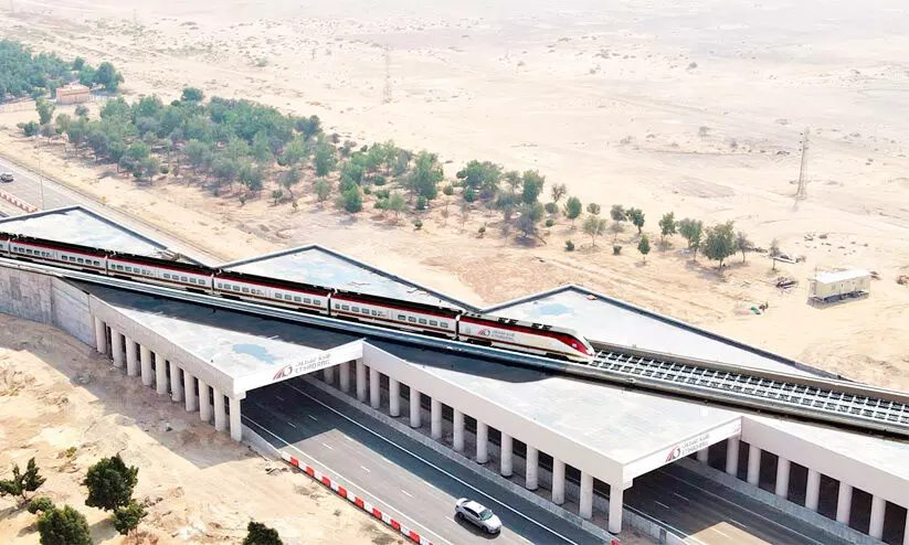 text_fieldsയു.എ.ഇയുടെ നിർമാണം പുരോഗമിക്കുന്ന ഇത്തിഹാദ് റെയിൽപാത