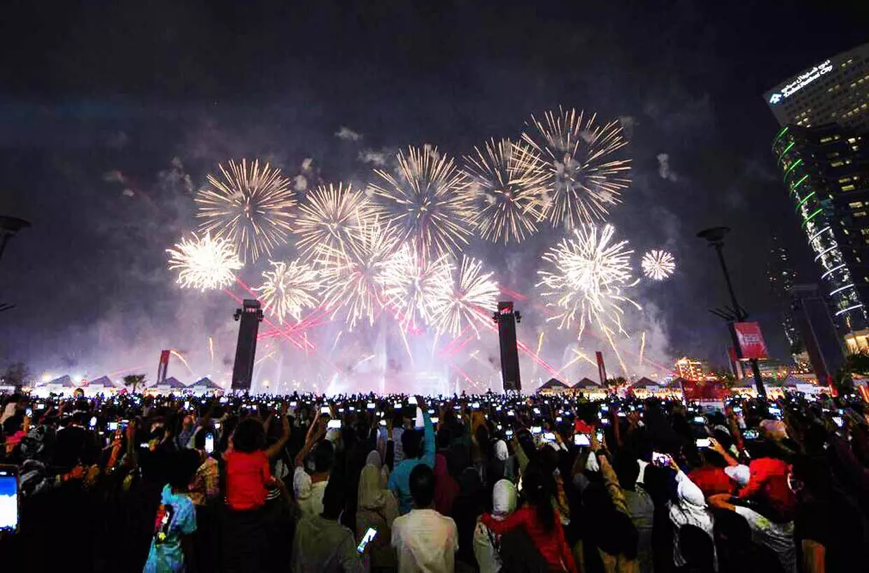 കണ്ണഞ്ചിപ്പിക്കുന്ന വെടിക്കെട്ടുകൾ, സംഗീതക്കച്ചേരികൾ, കുടുംബസൗഹൃദ സംഗമങ്ങൾ എന്നിവയെല്ലാം വിവിധ എമിറേറ്റുകളിൽ ഒരുക്കുന്നുണ്ട്. അബൂദബിയിൽ അൽ മര്യാദ് ദ്വീപിൽ വെള്ളി, ശനി ദിവസങ്ങളിൽ രാത്രി ഒമ്പതിന് വെടിക്കെട്ടുകൾ സജ്ജീകരിച്ചിട്ടുണ്ട്. പൊതുജനങ്ങൾക്ക് പൂർണമായും സൗജന്യമായി ഇത് ആസ്വദിക്കാനാവും. അൽ വത്ബയിൽ നടക്കുന്ന ശൈഖ് സായിദ് ഫെസ്റ്റിവലിന്റെ ഭാഗമായി ഡ്രോൺ, ലേസർ ഡിസ്പ്ലേകളും കരിമരുന്ന് വിസ്മയവും കൊറിയോഗ്രാഫ് ചെയ്ത എമിറേറ്റ്സ് ഫൗണ്ടൻ ഷോയുമുണ്ട്. തെക്കൻ അബൂദബിയിലെ ബനിയാസ് ഏരിയയിലെ ബവാബാത് അൽ ശർഖ് മാളിന്റെ ചരിത്രത്തിലെ ഏറ്റവും വലിയ വെടിക്കെട്ട് പ്രദർശനം നടത്തുമെന്ന് പ്രഖ്യാപിച്ചിട്ടുണ്ട്. യാസ് ദ്വീപിലെ തീം പാർക്കുകളിലും ഹോട്ടലുകളിലും വ്യാഴാഴ്ച മുതൽ ശനിയാഴ്ച വരെ നിരവധി ആഘോഷങ്ങൾ നടക്കുന്നുണ്ട്.