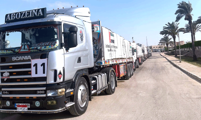 ഏകദേശം 1,000 ട്രക്കുകളാണ് ഇതിനായി റഫ അതിർത്തി കടന്നിട്ടുള്ളത്. റഫ അധിനിവേശത്തിനുശേഷം 320 ടൺ വസ്തുക്കളുമായി നാല് വാഹനവ്യൂഹങ്ങളാണ് അയച്ചിട്ടുള്ളത്. അതിൽ അഭയാർഥികൾക്ക് താമസിക്കാനുള്ള കൂടാരങ്ങളും ഭക്ഷണപ്പൊതികളും ഉൾപ്പെടും.