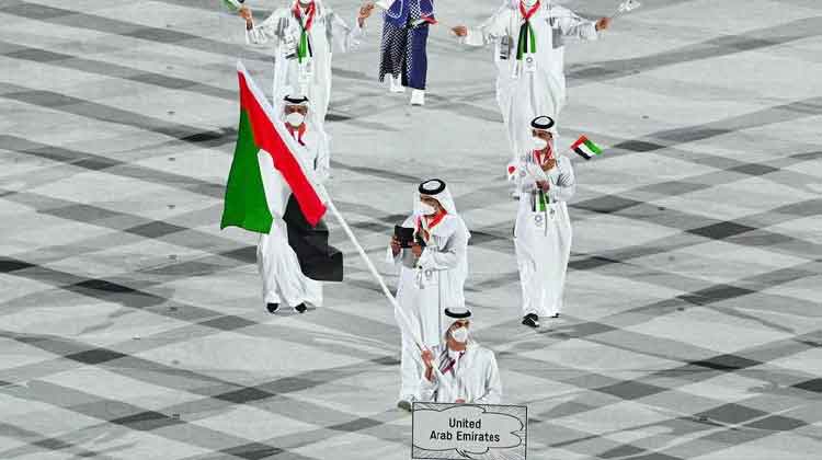 പരമ്പരാഗത ഇമാറാത്തി വേഷത്തിലാണ് അദ്ദേഹം യു.എ.ഇ സംഘത്തെ നയിച്ചത്. ജപ്പാനിലെ യു.എ.ഇ അംബാസഡർ ഷെഹബ് അഹ്മദ് അൽ ഫാഹിം, നാഷനൽ ഒളിമ്പിക് കമ്മിറ്റി ഫിനാൻഷ്യൽ അഫയേഴ്സ് അസിസ്റ്റൻറ് സെക്രട്ടറി ജനറൽ അസ്സ ബിൻത് സുലൈമാൻ എന്നിവരും പങ്കെടുത്തു.ഞായറാഴ്ചയാണ് യു.എ.ഇയുടെ ആദ്യ മത്സരം. ഷൂട്ടിങ്ങിൽ സെയ്ഫ് ബിൻ ഫുത്തൈസ് പോരാട്ടത്തിനിറങ്ങും.
