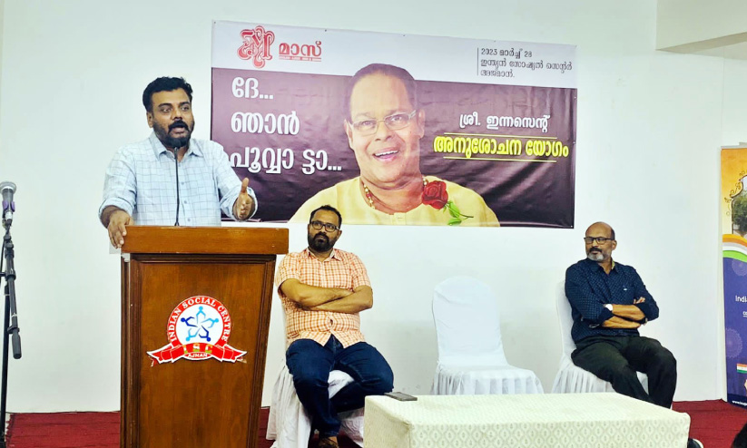 അജ്മാൻ: ചലച്ചിത്ര താരവും മുൻ എം.പിയുമായ ഇന്നസെന്റിന്റെ വിയോഗത്തിൽ മാസ് അനുശോചനയോഗം സംഘടിപ്പിച്ചു. എഴുത്തുകാരനും തിരക്കഥാ കൃത്തുമായ സന്തോഷ് ഏച്ചിക്കാനം അനുശോചന പ്രഭാഷണം നടത്തി. അജ്മാൻ ഇന്ത്യൻ സോഷ്യൽ സെന്റർ ഹാളിൽ നടന്ന അനുശോചന യോഗത്തിൽ മാസ് പ്രസിഡന്റ് വാഹിദ് നാട്ടിക അധ്യക്ഷത വഹിച്ചു.
