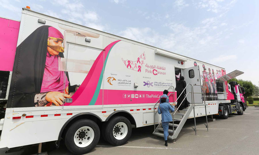 പിങ്ക് കാരവൻ മെഡിക്കൽ മൊബൈൽ ക്ലിനിക്ക് 40 വയസും അതിൽ കൂടുതലും പ്രായമുള്ള ക്യാൻസറിന്റെ ലക്ഷണങ്ങളില്ലാത്ത സ്ത്രീകൾക്ക് സൗജന്യ മാമോഗ്രാം സ്ക്രീനിങ് നൽകും. ആഗസ്റ്റ് 17, 18 തീയതികളിൽ കൽബ നഗരത്തിലെ സുഹൈല സബർബിലെ താമസക്കാർ സുഹൈല സബർബ് കൗൺസിലിലെ മെഡിക്കൽ മൊബൈൽ ക്ലിനിക്കിലെത്തി പരിശോധനകൾ നടത്തിയിരുന്നു. 24, 25 തീയതികളിൽ ദൈദ് നഗരത്തിലെ അൽ ബുസ്താൻ സബർബ് കൗൺസിലിലുമെത്തി. സെപ്റ്റംബർ 15ന് രാവിലെ 10 മുതൽ വൈകിട്ട് 3വരെ കൽബയിലെ ഷാർജ ലേഡീസ് ക്ലബിൽ ആയിരിക്കും സൗജന്യ പരിശോധന നടക്കുക.