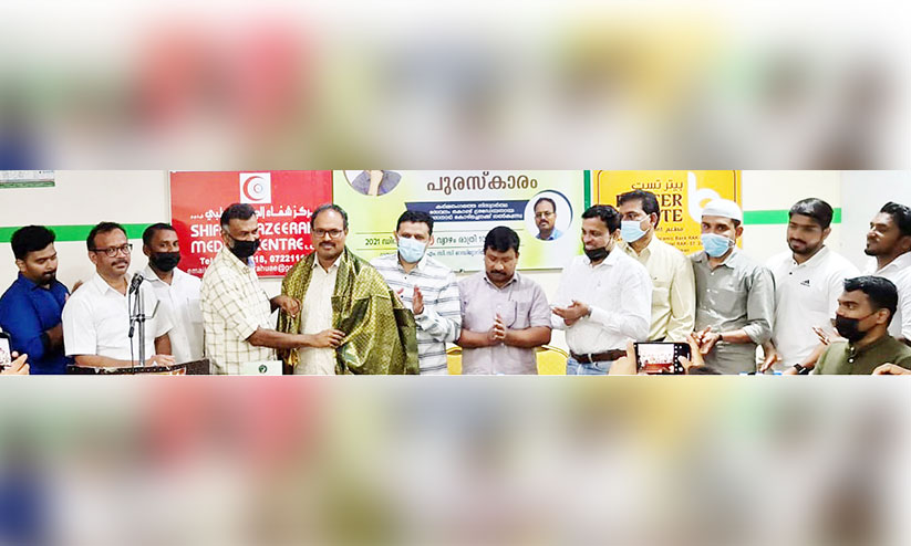 റാസല്ഖൈമ: അന്തരിച്ച ഇബ്രാഹിം ബാവയുടെ പേരില് റാക് കെ.എം.സി.സി പാലക്കാട് ജില്ല കമ്മിറ്റി നല്കിവരുന്ന സേവന രത്ന പുരസ്കാരം റാസല്ഖൈമയിലെ സാമൂഹിക പ്രവര്ത്തകനായ ഹസൈനാര് കോഴിച്ചെനക്ക് സമ്മാനിച്ചു. റാക് കെ.എം.സി.സി ഹാളില് നടന്ന ചടങ്ങില് കെ.എം.സി.സി ഭാരവാഹികളായ അബ്ദുന്നാസര് ശിഹാബുദ്ദീന് തങ്ങള്, ഹനീഫ് പാനൂര്, സി.വി. അബ്ദുല്റഹ്മാന് എന്നിവര് യഥാക്രമം പ്രശസ്തി ഫലകവും സാക്ഷ്യ പത്രവും പൊന്നാടയും ഹസൈനാര് കോഴിച്ചെനക്ക് സമ്മാനിച്ചു. മൃതദേഹം നാട്ടിലെത്തിക്കുന്നതുള്പ്പെടെയുള്ള ഒട്ടനവധി ജീവകാരുണ്യ പ്രവര്ത്തനങ്ങളിലെ നിസ്വാര്ഥ സേവനമാണ് ഹസൈനാറിനെ പുരസ്കാരത്തിനര്ഹനാക്കിയത്. റാക് കെ.എം.സി.സി പ്രസിഡന്റ് ഹനീഫ് പാനൂര് ഉദ്ഘാടനം ചെയ്തു. അസീസ് പേരോട്, താജുദ്ദീന് മര്ഹബ, നാസര് പൊന്മുണ്ടം, അസീസ് കൂടല്ലൂര്, കാദര്കുട്ടി, റാഷിദ് തങ്ങള്, ജാഫര് എന്നിവര് സംസാരിച്ചു. സഹദ് നന്ദി പറഞ്ഞു.