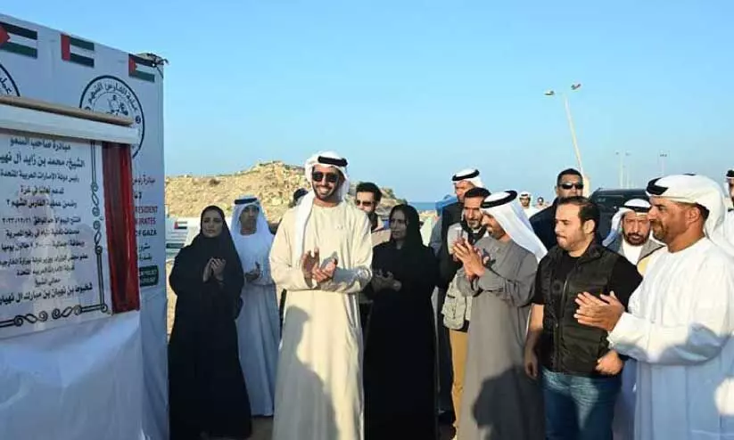 യു.എ.ഇ പ്രസിഡന്റ് ശൈഖ് മുഹമ്മദ് ബിൻ സായിദ് ആൽ നഹ്യാൻ പ്രഖ്യാപിച്ച ‘ഗാലന്റ് നൈറ്റ്-3’ എന്ന ജീവകാരുണ്യ ഓപറേഷന്റെ ഭാഗമായാണ് കടൽജല ശുചീകരണ പ്ലാന്റുകൾ സ്ഥാപിച്ചത്. സഹായങ്ങൾ എത്തിക്കുന്നതിനായി ഈജിപ്തിന്റെ ഭാഗമായ അൽ ആരിഷിൽ യു.എ.ഇ വെയർഹൗസ് തുറന്നിട്ടുണ്ട്.