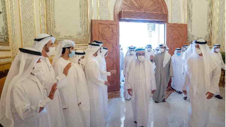 ഷാര്ജ കിരീടാവകാശിയും ഡെപ്യൂട്ടി ഭരണാധികാരിയുമായ ശൈഖ് സുൽത്താൻ ബിൻ മുഹമ്മദ് ബിൻ സുൽത്താൻ അൽ ഖാസിമി, ഷാർജ ഉപഭരണാധികാരി ശൈഖ് അബ്ദുല്ല ബിൻ സാലിം ബിൻ സുൽത്താൻ അൽ ഖാസിമി, ഉപപ്രധാനമന്ത്രിയും പ്രസിഡൻഷ്യൽകാര്യ മന്ത്രിയുമായ ശൈഖ് മൻസൂർ ബിൻ സായിദ് അൽ നഹ്യാൻ, ശൈഖ് ഹംദാൻ ബിൻ മുഹമ്മദ് ബിൻ സായിദ് അൽ നഹ്യാൻ എന്നിവർ സന്നിഹിതരായി. പെരുന്നാള് ആശംസ കൈമാറിയ ഭരണാധികാരികള് രാജ്യത്തിനും ജനങ്ങള്ക്കും കൂടുതൽ പുരോഗതിയും സമൃദ്ധിയും നൽകി അനുഗ്രഹിക്കണമെന്ന് പ്രാർഥിച്ചു.