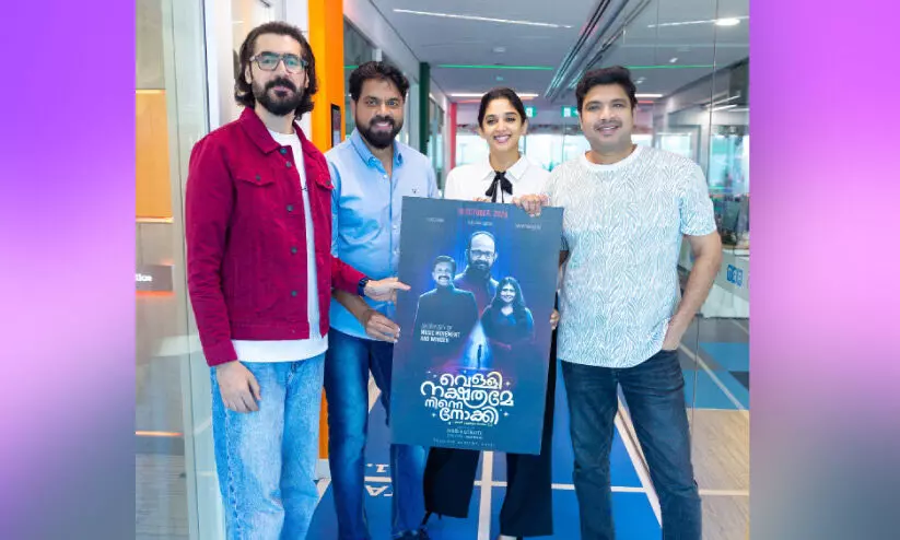 ദുബൈ: ഒക്ടോബർ 18ന് ദുബൈ ഫോക്ലോർ അക്കാദമി തിയറ്ററിൽ നടക്കുന്ന ‘വെള്ളിനക്ഷത്രമേ നിന്നെ നോക്കി’ എന്ന പരിപാടിയുടെ ബ്രോഷർ പ്രകാശനം ഹിറ്റ് 96.7 എഫ്.എം സ്റ്റുഡിയോയിൽ നടന്നു. ഫ്ലീറ്റ് ലൈൻ ഷിപ്പിങ് മുഖ്യ പ്രായോജകരാകുന്ന പരിപാടിയിൽ ഗായകരായ കല്ലറ ഗോപൻ, ജി. ശ്രീറാം, നാരായണി ഗോപൻ എന്നിവർക്കൊപ്പം യു.എ.ഇയിലെ അറുപതോളം കലാകാരന്മാരും തിയറ്റർ പ്രവർത്തകരും പങ്കെടുക്കും.