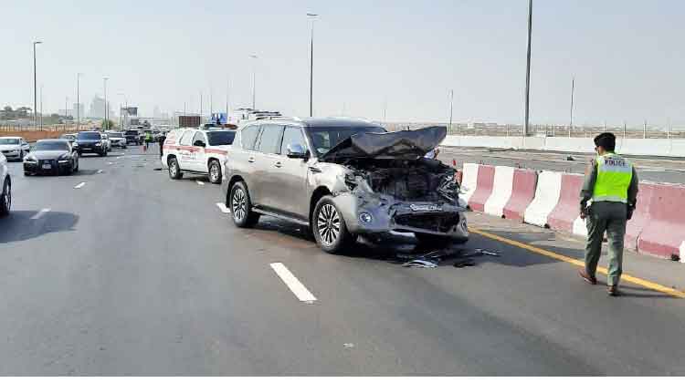 ആറുവാഹനങ്ങൾ കൂട്ടിയിടിച്ചുണ്ടായ അപകടം ചൊവ്വാഴ്ച രാവിലെ ദുബൈ-അൽ ഐൻ റോഡിൽ ഗതാഗത തടസ്സം സൃഷ്ടിച്ചു. തുടർന്ന് ഗതാഗതം സമാന്തര റോഡുകളിലേക്ക് തിരിച്ചുവിട്ടു.