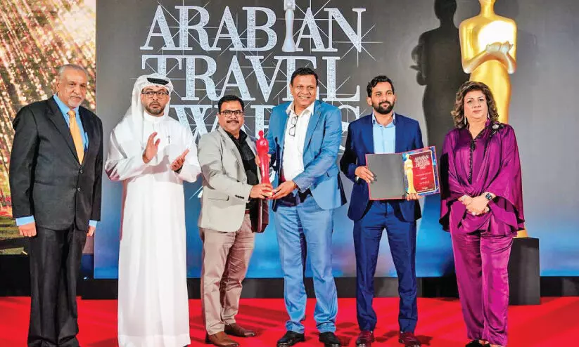 text_fieldsഅറേബ്യൻ ട്രാവൽ അവാർഡ് ടൂറിസം മന്ത്രാലയത്തിലെ ടൂറിസം വികസന ഡയറക്ടർ ഡോ. മുഹമ്മദ് അൽ അഹ്ബാബിയിൽ നിന്നും സ്മാർട്ട് ട്രാവൽ ഗ്രൂപ് ചെയർമാൻ അഫി അഹമ്മദ് യു.പി.സി, റെജിൽ സുധാകരൻ (സി.സി.ഒ), സഫീർ മഹമൂദ് (ജനറൽ മാനേജർ) എന്നിവർ ചേർന്ന് ഏറ്റുവാങ്ങുന്നു
