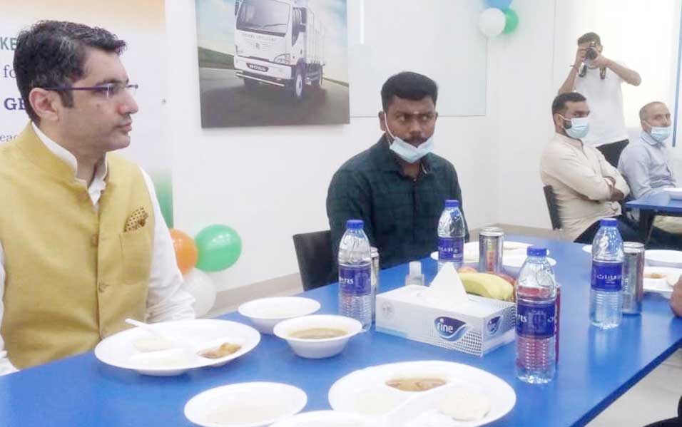 തൊഴിലാളികള്ക്കൊപ്പം പ്രഭാതഭക്ഷണം കഴിച്ച കോണ്സല് ജനറല് അവരുമായി സംവദിച്ചു. പ്രവാസജീവിതത്തിലെ പുതിയ അനുഭവമാണ് കോണ്സല് ജനറലിനൊപ്പമുള്ള പരിപാടിയെന്ന് തൊഴിലാളിയായ മുരുകന് പറഞ്ഞു. നിര്മാണശാലയിലെ പ്രവര്ത്തനങ്ങള് വീക്ഷിച്ച അമന് പുരി ഫാക്ടറി വളപ്പില് വൃക്ഷ തൈകളും നട്ടു. സാംസ്കാരിക പരിപാടിയില് തൊഴിലാളികളുടെ കലാ വിരുന്ന് അരങ്ങേറി. അശോക് ലെയ്ലൻഡ് പ്ലാൻറ് ഹെഡ് ടൊപ്പസ് രഞ്ജന്, ഹ്യൂമന് റിസോഴ്സ് മേധാവി കണ്ണന് സി.ആര്, ഫിനാന്സ് മാനേജര് ദിനേഷ്കുമാര് എന്നിവര് ഡോ. അമന്പുരിയെ സ്വീകരിച്ചു. ലേബര് കോണ്സുലര് ജിതേന്ദര് സിങ് നെഗി, പി.ബി.എസ്.കെ മാനേജര് അനീഷ് ചൗധരി എന്നിവര് അനുഗമിച്ചു. ബാങ്ക് ഓഫ് ബറോഡയും എന്.എം.സിയും 'ബ്രേക്ക് ഫാസ്റ്റ് വിത്ത് സി.ജി'പങ്കാളികളായി.
