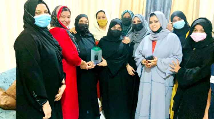 ഉപഹാരം ഫെബിന റഷീദ്, വൈസ് പ്രസിഡൻറ് സൈനബ മല്ലച്ചേരി, മുഖ്യരക്ഷാധികാരി സുഹറ അഷ്റഫ്, ആക്ടിങ് ജനറൽ സെക്രട്ടറി ഫർഹ അർഷിൽ, ട്രഷറർ സബീന ഇഖ്ബാൽ എന്നിവർ ചേർന്ന് കൈമാറി. വനിതാവിഭാഗം ഭാരവാഹികളും മയ്യിത്ത് പരിപാലന കമ്മിറ്റി അംഗങ്ങളുമായ ഹസീന റഫീഖ്, ഷീജ അബ്ദുൽഖാദർ, സഫിയ നവാസ്, നസീമ ഖാലിദ്, ഫൈറൂസ് സലാം എന്നിവർ പങ്കെടുത്തു.