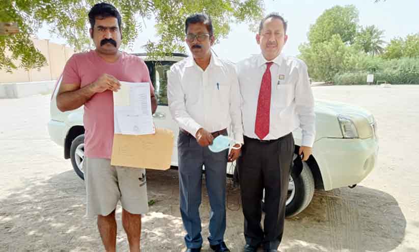 text_fieldsഅൽഐൻ ഇന്ത്യൻ സോഷ്യൽ സെന്റർ പ്രസിഡന്റ് മുബാറക് മുസ്തഫയും ജനറൽ സെക്രട്ടറി മണികണ്ഠനും ചേർന്ന് രാജേഷിന് ഔട്ട്പാസും ടിക്കറ്റും കൈമാറുന്നു