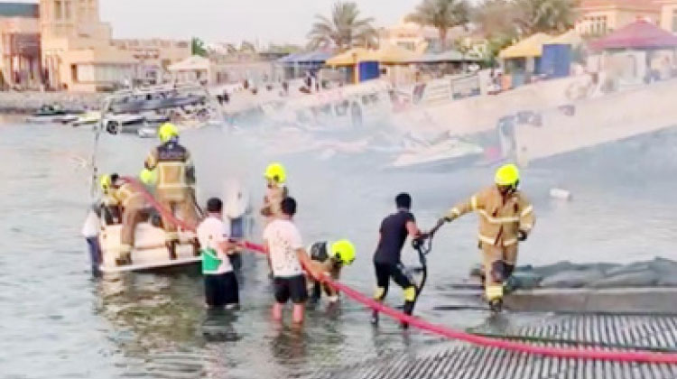 ബോട്ടിന് തീപിടിച്ചത് ദുബൈ സിവിൽ ഡിഫൻസിെൻറ നേതൃത്വത്തിൽ അണക്കുന്നു