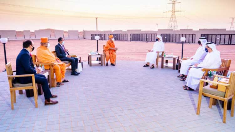 ക്ഷേത്രനിർമാണ പ്രവർത്തനങ്ങളെ ശൈഖ് അബ്ദുല്ല ബിൻ സായിദ് പ്രശംസിച്ചതായി ബ്രഹ്മവിഹാരി സ്വാമി ചൂണ്ടിക്കാട്ടി. ബി.എ.പി.എസ് ആത്മീയ തലവൻ മഹാന്ത് സ്വാമി മഹാരാജിനുവേണ്ടി ബ്രഹ്മവിഹാരി, ശൈഖ് അബ്ദുല്ലക്ക് ക്ഷേത്രഗോപുരത്തെ പ്രതിനിധാനം ചെയ്തുള്ള സ്വർണ സ്മാരക ഉപഹാരം സമ്മാനിച്ചു. രാജ്യത്തെ ആദ്യത്തെ പരമ്പരാഗത ഹിന്ദു ക്ഷേത്രം 2022 ൽ പൂർത്തീകരിക്കുമെന്ന് പ്രതീക്ഷിക്കുന്നു. യു.എ.ഇയിലെ ഇന്ത്യൻ അംബാസഡർ പവൻ കപൂറും പങ്കെടുത്തു. അബൂദബി നഗരാതിർത്തിക്കു വെളിയിൽ അബൂദബി - ദുബൈ ഹൈവേക്കു സമീപം അബു മുറൈഖയിലാണ് ക്ഷേത്രം നിർമിക്കുന്നത്.