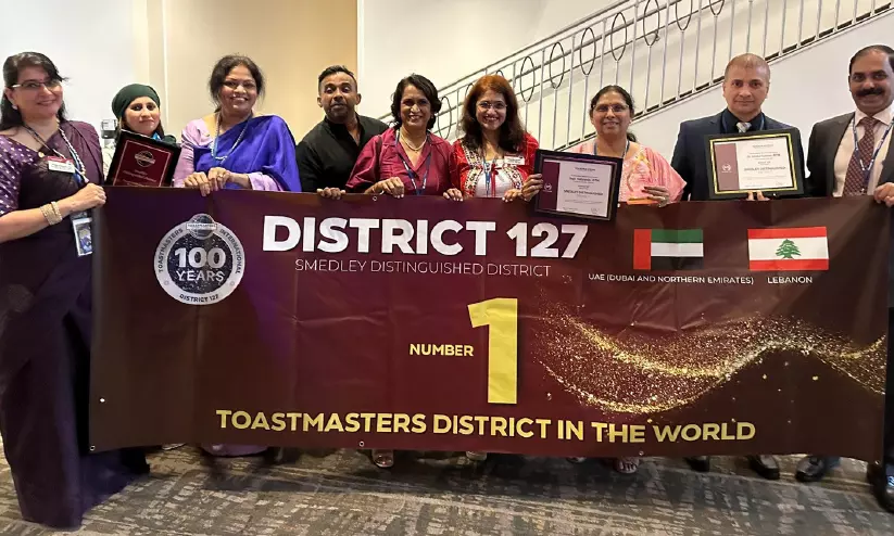 ദുബൈ: പബ്ലിക് സ്പീക്കിങ്ങിലും നേതൃത്വ വികസനത്തിലും ലോകത്തിലെ ഏറ്റവും വലിയ ലാഭരഹിത സംഘടനയായ ടോസ്റ്റ് മാസ്റ്റേഴ്സ് ഇന്റർനാഷനലിന്റെ ഡിസ്ട്രിക്ട് 127നെ ലോകത്തിലെ ഒന്നാം നമ്പർ ഡിസ്ട്രിക്ടായി പ്രഖ്യാപിച്ചു. അടുത്തിടെ കാലിഫോർണിയയിൽ നടന്ന ടോസ്റ്റ് മാസ്റ്റേഴ്സ് ഇന്റർനാഷനലിന്റെ 100ാം വാർഷിക കൺവെൻഷനിലാണ് പ്രഖ്യാപനം.