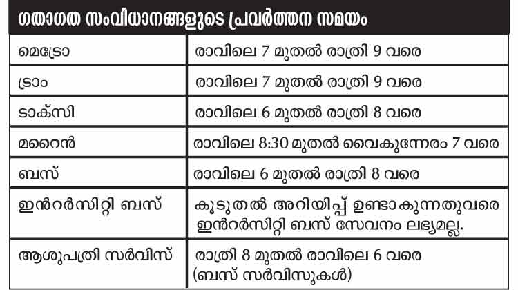 ദുബൈ റോഡ്സ് ആൻഡ് ട്രാൻസ്പോർട്ട് അതോറിറ്റി മെട്രോ, ട്രാം, ബസുകൾ, സമുദ്ര ഗതാഗതം, ടാക്സികൾ, ഷെയറിങ് ട്രാൻസ്പോർട്ടേഷൻ തുടങ്ങിയ പൊതുഗതാഗത മാർഗങ്ങളുടെ സേവന സമയവും ഉപഭോക്തൃ സന്തോഷ കേന്ദ്രങ്ങൾ, സേവന ദാതാക്കളുടെ കേന്ദ്രങ്ങൾ എന്നിവയുടെ പ്രവൃത്തി സമയങ്ങളും പുതുക്കി.