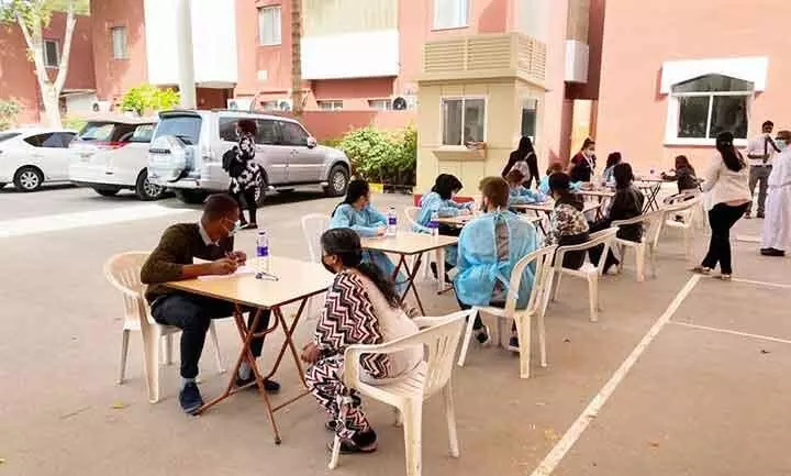 text_fieldsഅബൂദബിയിലെ ക്രിസ്ത്യൻ പള്ളി അങ്കണത്തിൽ സജ്ജീകരിച്ച വാക്സിൻ വിതരണ കേന്ദ്രം