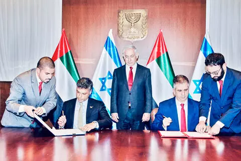 text_fieldsഇസ്രായേൽ പ്രധാനമന്ത്രി ബിന്യമിൻ നെതന്യാഹുവിന്റെ സാന്നിധ്യത്തിൽ യു.എ.ഇ-ഇസ്രായേൽ കസ്റ്റംസ് സഹകരണകരാർ ഒപ്പുവെക്കുന്നു