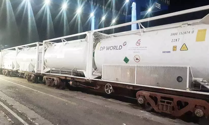 text_fieldsയു.എ.ഇയിൽനിന്ന് കപ്പലിൽ ഗുജറാത്തിലെ മുൻദ്ര പോർട്ടിലെത്തിച്ച ഓക്സിജൻ ടാങ്കറുകൾ