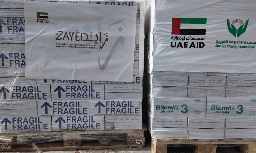 എമിറേറ്റ്സ് റെഡ് ക്രസന്റ്, സായിദ് ഹ്യുമാനിറ്റേറിയൻ ഫൗണ്ടേഷൻ, ഷാർജ ചാരിറ്റി ഫൗണ്ടേഷൻ എന്നിവയുടെ പങ്കാളിത്തത്തിലാണ് സഹായ വസ്തുക്കൾ ശേഖരിച്ചത്. പാൽ, കുട്ടികൾക്കുള്ള പോഷകാഹാര പദാർഥങ്ങൾ, തണുപ്പുകാല വസ്ത്രങ്ങൾ, കുടുംബങ്ങൾക്ക് ആവശ്യമായ വസ്തുക്കളടങ്ങിയ റിലീഫ് ബാഗുകൾ എന്നിവയാണ് പ്രധാനമായും എത്തിച്ചത്.