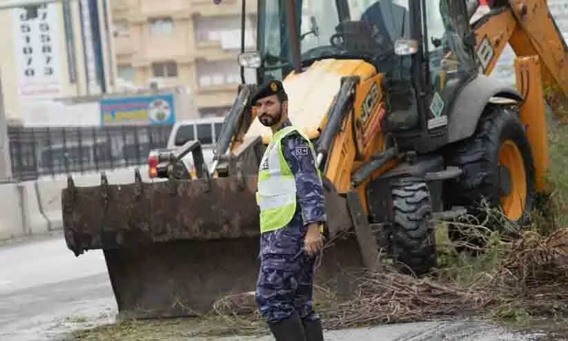 text_fieldsറാക് പൊലീസിന്റെ നേതൃത്വത്തിൽ കനത്ത മഴയിൽ റോഡിൽ രൂപപെട്ട തടസ്സം നീക്കുന്നു