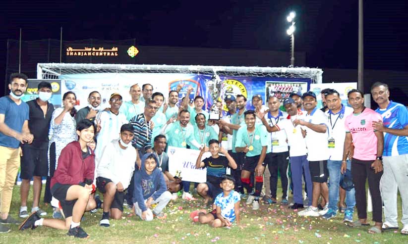 വെറ്ററൻസ് സെവൻസ് ഫുട്ബാൾ ടൂർണമെൻറിൽ വിജയികളായ ടീം ട്രോഫിയുമായി