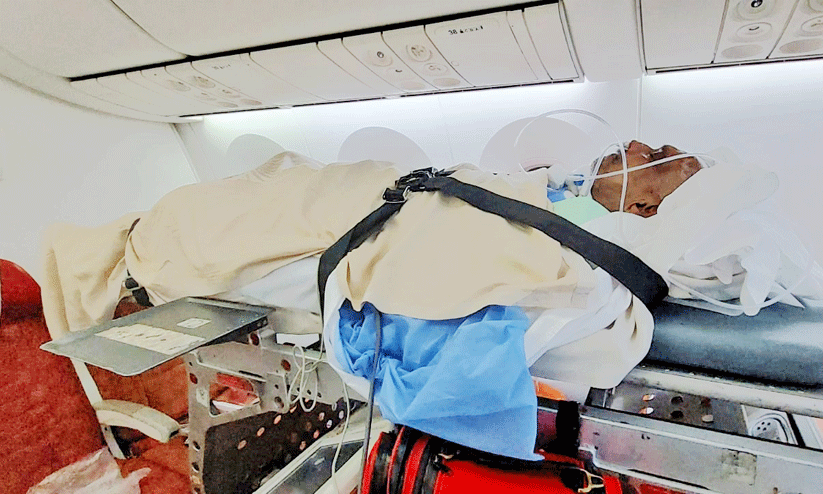 കോഴിക്കോട് എയര്പോര്ട്ടിലേക്ക് യാത്ര മാറ്റാനായിരുന്നു എയര് ഇന്ത്യ അധികൃതരുടെ നിർദേശം. തലച്ചോറിലെ രക്തസ്രാവവും കാലിലെ രണ്ട് എല്ലുകളുടെ ഒടിവും വാരിയെല്ലുകളിലെ ക്ഷതവും കോഴിക്കോട്-തിരുവനന്തപുരം റോഡ് മാര്ഗം യാത്ര ആരോഗ്യനില വഷളാക്കുമെന്ന വിവരം ഉയര്ത്തി തിരുവനന്തപുരത്തേക്ക് സ്ട്രക്ച്ചര് സൗകര്യത്തിന് എയര് ഇന്ത്യയെ സമീപിക്കുകയും ഇന്ത്യന് കോണ്സുലേറ്റ് ഉദ്യോഗസ്ഥരുടെ നിരന്തര പരിശ്രമവും മാധ്യമവാര്ത്തയും വിജയം കാണുകയായിരുന്നുവെന്നും പ്രസാദ് തുടര്ന്നു. ഡോക്ടര്മാരും ജീവനക്കാരും പിതാവിന് നല്കിയ ശുശ്രൂഷക്കും നാട്ടിലത്തെിക്കാന് പിന്തുണ നല്കിയ ഇന്ത്യന് കോണ്സുലേറ്റിനും സാമൂഹിക പ്രവര്ത്തകര്ക്കും നന്ദിയുണ്ടെന്നും മകന് നിഖില് പറഞ്ഞു.
