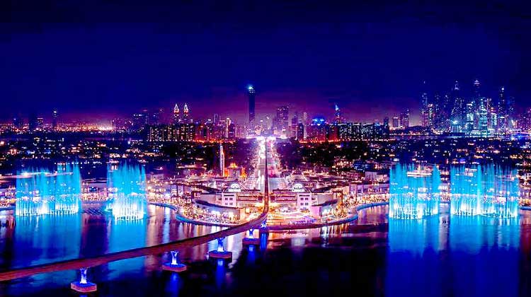 14,000 ചതുരശ്ര അടിയിലായി സ്ഥാപിച്ചിരിക്കുന്ന ഫൗണ്ടെയ്ൻ 105 മീറ്റർ വരെ ഉയർന്ന് കാഴ്ചക്കാർക്ക് ഹരം പകരും. 3000 എൽ.ഇ.ഡി ലൈറ്റുകളാണ് നിറം പകരുന്നത്. കടലിൽനിന്നുള്ള ജലം നേരിട്ട് ഇവിടേക്ക് എത്തിക്കുന്നതിനാൽ വെള്ളം സ്റ്റോക്ക് ചെയ്യേണ്ടിവരുന്നില്ല.അതിനാൽ, വാട്ടർ ടാേങ്കാ ഫിൽട്രേഷൻ ഉപകരണമോ ആവശ്യമായി വരുന്നില്ല എന്നതും ഇതിെൻറ മേന്മയാണ്.കാതടപ്പിക്കുന്ന ശബ്ദമൊരുക്കാൻ ഇരുവശങ്ങളിലായി 86 സ്പീക്കറുകൾ ഒരുക്കിയിട്ടുണ്ട്. platinumlist.net എന്ന വെബ്സൈറ്റ് വഴി രജിസ്റ്റർ ചെയ്യുന്നവർക്ക് സൗജന്യമായി പങ്കെടുക്കാം.