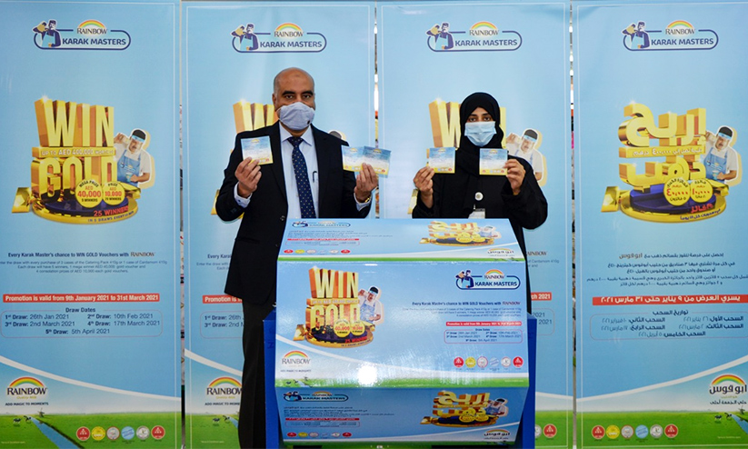 2021 ജനുവരി ഒമ്പത് മുതൽ മാർച്ച് 31 വരെ കാലയളവിൽ റെയിൻബോ കാറ്ററിങ് മിൽക്ക് വാങ്ങുന്ന യു.എ.ഇയിലെ റെസ്റ്റാറൻറ്, കഫറ്റീരിയകൾക്കായി നടത്തുന്ന അഞ്ച് നറുക്കെടുപ്പുകളിലൂടെ നാല് ലക്ഷം ദിർഹമിെൻറ ഗോൾഡ് വൗച്ചറുകളാണ് സമ്മാനമായി നൽകുന്നത്. ഇനിയുള്ള മൂന്നു നറുക്കെടുപ്പുകൾ മാർച്ച് രണ്ട്, 17, ഏപ്രിൽ അഞ്ച് തീയതികളിലാണ് നടക്കുന്നത്. ഓരോ നറുക്കെടുപ്പിലൂടെയും ഓരോ മെഗാ വിജയിക്കും 40,000 ദിർഹമിെൻറ ഗോൾഡ് വൗച്ചറും നാലു വിജയികൾക്ക് 10,000 ദിർഹമിെൻറ ഗോൾഡ് വൗച്ചറുകളുമാണ് സമ്മാനമായി നൽകുന്നത്.