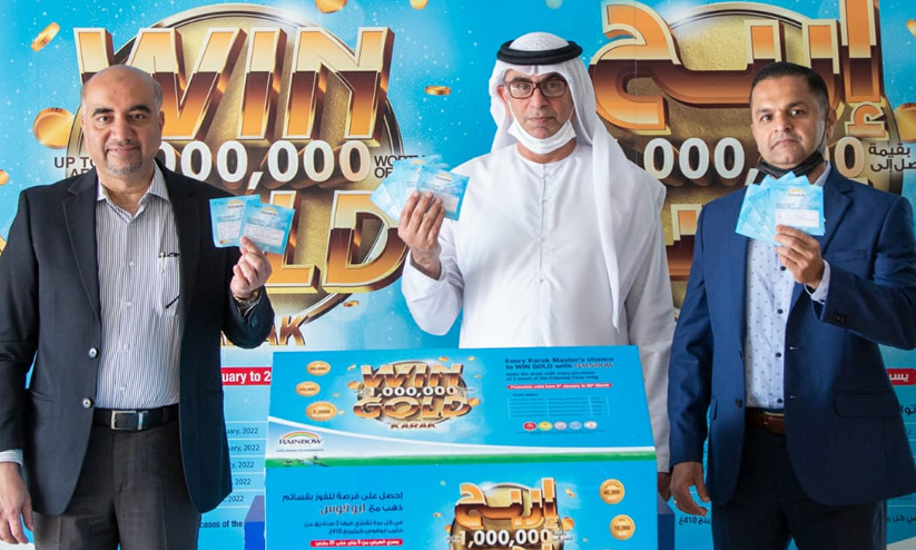 നറുക്കെടുപ്പിൽ ചോയ്ത്രം ബി.ഡി.എം ദീപക് ഷെട്ടി, സെയിൽസ് മാനേജർ നാസർ അഹമ്മദ് എന്നിവർ പങ്കെടുത്തു. അഞ്ച് നറുക്കെടുപ്പുകളിലൂടെ 55 വിജയികൾക്ക് ഒരു മില്യൺ ദിർഹമിന്റെ ഗോൾഡ് വൗച്ചറുകളും 100 വിജയികൾക്ക് 1500 ദിർഹം മൂല്യമുള്ള ട്രാവൽ വൗച്ചറുകളുമാണ് സമ്മാനമായി നൽകുന്നത്. ഓരോ നറുക്കെടുപ്പിലൂടെയും മൂന്ന് മെഗാ വിജയികൾക്ക് 40,000 ദിർഹം വീതമുള്ള ഗോൾഡ് വൗച്ചറുകളും എട്ട് വിജയികൾക്ക് 10,000 ദിർഹം മൂല്യമുള്ള ഗോൾഡ് വൗച്ചറുകളും 20 വിജയികൾക്ക് 1500 ദിർഹം മൂല്യമുള്ള ട്രാവൽ വൗച്ചറുകളുമാണ് ലഭിക്കുന്നത്. അഞ്ചാമത്തേതും അവസാനത്തേതുമായ നറുക്കെടുപ്പ് മാർച്ച് 22ന് നടക്കും. യു.എ.ഇയിലെ റസ്റ്റാറന്റ്, കഫ്റ്റേരിയ ഉടമകൾക്ക് വളരെ ലളിതമായി നറുക്കെടുപ്പിൽ പങ്കെടുക്കാം. റെയിൻബോ മിൽക് 410 ഗ്രാം കാറ്ററിംഗ് പാക്ക് മിൽക്കിന്റെ മൂന്ന് കാർട്ടണുകൾ വാങ്ങിക്കുമ്പോൾ സെയിൽസ്മാൻമാരിൽ നിന്ന് നറുക്കെടുപ്പിനായുള്ള കൂപ്പണുകൾ ലഭിക്കും.