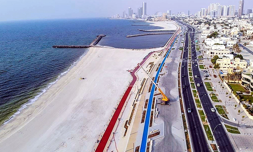 പൂക്കളും പുല്മേടുകളും വിശ്രമ കേന്ദ്രങ്ങളും വിനോദങ്ങളും കോര്ത്തിണക്കിയുള്ള, 3.3 ബീച്ച് ഫ്രണ്ട് വികസനം ഷാര്ജയുടെ സ്വപ്ന പദ്ധതികളില് പ്രധാനമാണ്. സുപ്രീം കൗണ്സില് അംഗവും ഷാര്ജ ഭരണാധികാരിയുമായ ശൈഖ് ഡോ. സുല്ത്താന് ബിന് മുഹമ്മദ് അല് ഖാസിമിയുടെ പ്രത്യേകനിര്ദേശ പ്രകാരമുള്ളതാണ് ഈ പദ്ധതി. ഷാര്ജയുടെ പ്രധാന വിനോദമേഖലകളെ ബന്ധിപ്പിച്ച് നിര്മിക്കുന്ന സൈക്കിള്, വ്യായാമ പാത പ്രദേശവാസികളുടെ ആരോഗ്യത്തിന് കൂട്ടാകും.
