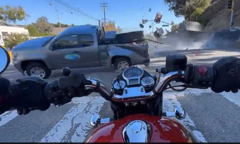 text_fieldsഭയാനകമായ ഒരു വാഹനാപകടത്തിന്റെ വിഡിയോയാണ് സമൂഹമാധ്യമങ്ങളിൽ ഇപ്പോൾ വൈറലാവുന്നത്. അമേരിക്കയിലെ തെക്കൻ കാലിഫോർണിയയിലെ തിരക്കേറിയ പസഫിക് കോസ്റ്റ് ഹൈവേയിൽ നിന്ന് ഇടത്തോട്ട് തിരിയാൻ സിഗ്നൽ കാത്തിരിക്കുകയായിരുന്നു ബൈക്ക് യാത്രികൻ. ഉടൻ അതിവേഗത്തിലെത്തിയ ഒരു കറുത്ത എസ്.യു.വി, പിക്കപ്പ് ട്രക്കിലേക്ക് ഇടിച്ചുകയറി.