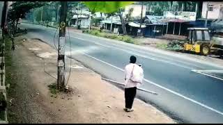ഇതിനിടക്ക് ഒരു പോസ്റ്റും നിൽക്കുന്നുണ്ടെന്നതാണ് രസകരം. ആളിനെയൊ പോസ്റ്റിനെയോ ഇടിക്കാതെ കൃത്യമായി മധ്യത്തിലൂടെ പോകുന്നതാണ് വിസ്മയമുളവാക്കുന്നത്. നിയന്ത്രണംവിട്ട് പാഞ്ഞ പിക്കപ്പ് പിന്നേയും റോഡിലൂടെ മുന്നോട്ട്പോകുന്നതും വീഡിയോയിൽ കാണാം. കൊല്ലം ജില്ലയിലെ ചവറയിൽ നടന്നതാണ് അപകടമെന്നാണ് വിവരം. റോഡുവക്കിലെ സി.സി ടി.വിയിൽ ദൃശ്യങ്ങൾ പതിയുകയായിരുന്നു.