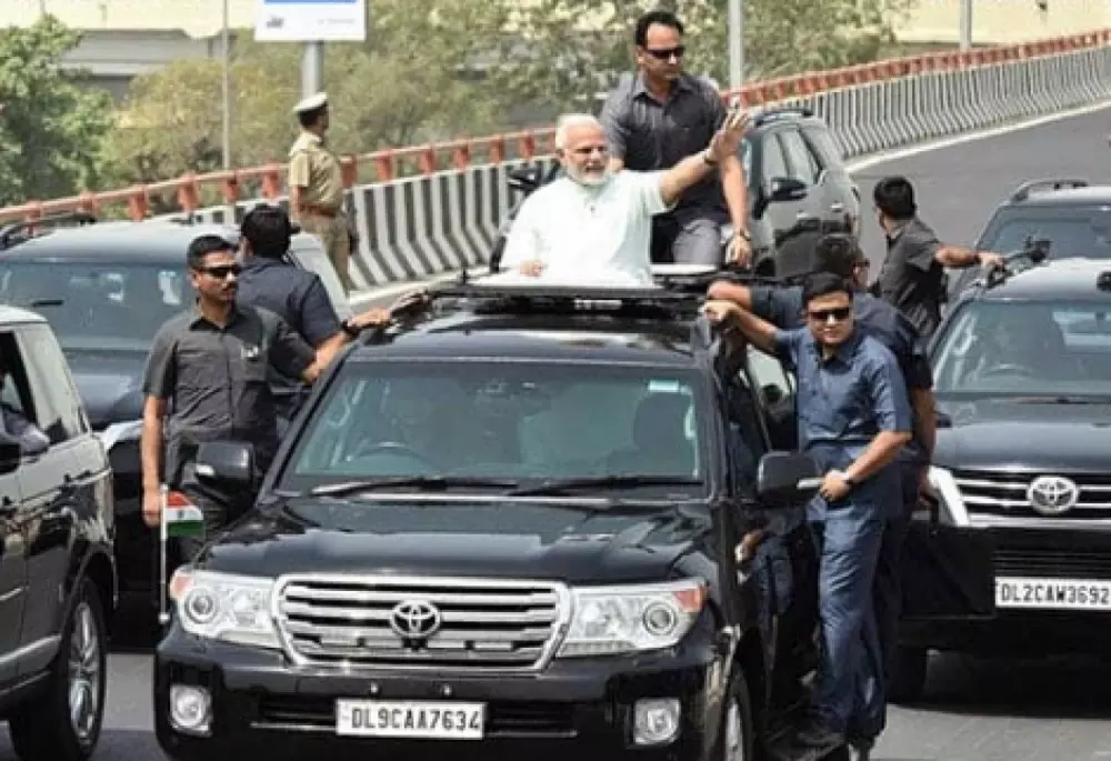 ഗുജറാത്ത് മുഖ്യമന്ത്രിയായിരിക്കുമ്പോൾ ബുള്ളറ്റ് പ്രൂഫ് മഹീന്ദ്ര സ്കോർപിയോ ആയിരുന്നു മോദിയുടെ വാഹനം. 2014ൽ പ്രധാനമന്ത്രിയുടെ കസേരയിൽ എത്തിയതോടെ ബി.എം.ഡബ്ല്യു 7 സീരീസ് ഹൈ-സെക്യൂരിറ്റി എഡിഷനിലേക്ക് മാറി. പിന്നീടാണ് റേഞ്ച് റോവർ വോഗും ടൊയോട്ട ലാൻഡ് ക്രൂയിസറും എത്തുന്നത്.