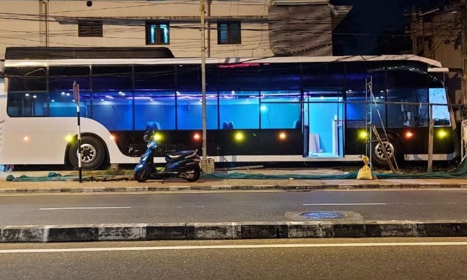 തിരുവന്തപുരം സ്വദേശി സിദ്ദീഖിെൻറ ഉടമസ്ഥതയിലുളള മിർച്ച് മസാല ഹോട്ടലാണ് ലോക്ഡൗൺ കാലത്താണ് പുതിയ രൂപത്തിലായത്. അടിമാലി സ്വദേശി സാജനാണ് ബസ് മോഡൽ ഹോട്ടൽ നിർമിച്ചത്. അകത്തുള്ള സീറ്റുകളും ഫ്രണ്ട് മിററും ബോണറ്റും ബാക്ക് ടെയിൽ ലാമ്പുകളും ടയറും മാത്രമാണ് ഒർജിനൽ ബസിെൻറ ഭാഗങ്ങളായുള്ളത്. ബാക്കിയെല്ലാം സാജേൻറയും സഹായികളുടെയും കരവിരുതിനാൽ മെനഞ്ഞവയാണ്. മുഖം മിനുക്കിയുള്ള രണ്ടാം വരവ് കൊവിഡ് മൂലം അൽപ്പം വൈകിയെങ്കിലും ബസ് ഹോട്ടൽ പകരുന്ന പുതിയ അനുഭവത്തെ തിരുവനന്തപുരത്തുകാർ ഇരുകയ്യും നീട്ടി സ്വീകരിക്കുമെന്നാണ് ഇവരുടെ പ്രതീക്ഷ.