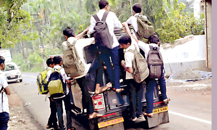 മലപ്പുറത്തുകാരുടെ സാഹസികയാത്ര കണ്ടാണ് തങ്ങളുടെ വാഹനത്തിന് ഇത്രയും കപ്പാസിറ്റിയുണ്ടെന്ന് കമ്പനിക്കാർ പോലും തിരിച്ചറിഞ്ഞത്. പരമാവധി 10 പേർക്ക് പോകാവുന്ന വാഹനത്തിൽ 25ഉം 30ഉം പേർ. ഇവിടത്തുകാരുടെ തന്നെ ഭാഷയിൽ പറഞ്ഞാൽ ‘വെളഞ്ഞിയിൽ (ചക്കയുടെ കറ) ഈച്ചയൊട്ടിയ പോലെ’. ഏതെങ്കിലും സ്കൂളിനടുത്തോ ഫുട്ബാൾ ടൂർണമെൻറ് നടക്കുന്നിടത്തോ കലാപരിപാടികൾ നടക്കുന്നിടത്തോ പോയാൽ ഈ കാഴ്ച കൂടുതൽ വ്യക്തതയോടെ കാണാമായിരുന്നു. ഒറ്റക്കൈയും കാലിെൻറ തള്ള വിരലും ഏതെങ്കിലുമൊരു ഭാഗത്തുറപ്പിച്ച് മറുകൈയിൽ പുസ്തകങ്ങളുമായി വാഹനം ഏതെന്ന് തിരിച്ചറിയാൻ പറ്റാത്ത രീതിയിലായിരുന്നു യൂനിഫോം അണിഞ്ഞ പയ്യന്മാരുടെ അഭ്യാസം. ജീപ്പിെൻറ മുകളിൽ കയറി ആർത്തുവിളിച്ചു പോകുന്ന കളിക്കമ്പക്കാർ എന്നും നാടിെൻറ ആവേശമായിരുന്നു. എന്നാൽ, ഇത്തരം കാഴ്ചകൾ കാണാൻ ഏറ്റവും ‘താൽപര്യം’ കാണിച്ചിരുന്നത് പൊലീസുകാരായിരുന്നു. വഴിയിൽ പൊലീസ് കൈ കാണിക്കുമ്പോൾ തൂങ്ങിയവരുടെ ചിതറിയോട്ടം നാട്ടുകാർ പതിവായി ആസ്വദിച്ചിരുന്നതാണ്.