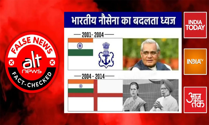 മൻമോഹൻ സിംഗ് സർക്കാരിന്റെ കീഴിൽ സെന്റ് ജോർജ്ജ് കുരിശുള്ള നാവികസേനയുടെ പതാക തിരികെ കൊണ്ടുവന്നതായി പ്രമുഖ ടി.വി വാർത്താ ചാനലുകളുടെ അവതാരകരും ബി.ജെ.പി നേതാക്കളും അവകാശപ്പെട്ടു. എന്നാൽ, ഇത് ശരിയല്ല. തീർത്തും വസ്തുതാ വിരുദ്ധമാണ്. ആൾട്ട് ന്യൂസിന്റെ അന്വേഷണത്തിൽ നാവികസേനയിൽനിന്നുതന്നെയുള്ള വിശദീകരണങ്ങൾ വെച്ച് ഇത് കളവാണെന്ന് തെളിയിക്കപ്പെട്ടു.