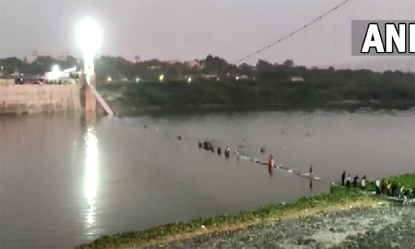 ഗുജറാത്തിലെ മച്ചു നദിയിൽ തൂക്കുപാലം തകർന്നു വീണു; രക്ഷാപ്രവർത്തനം തുടരുകയാണ്