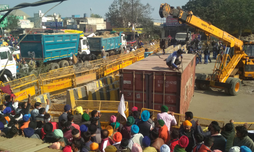 കർഷകസമരം ശക്തിെപ്പടുത്താൻ നേതാക്കൾ ഉപവാസം പ്രഖ്യാപിച്ച തിങ്കളാഴ്ച, സമരസിരാകേന്ദ്രമായ സിംഘുവിലേക്ക് കണക്കുകൂട്ടലുകൾ തെറ്റിച്ച് പ്രക്ഷോഭകർ വന്നതോടെയാണ് ബാരിക്കേഡുകളും മുള്ളുവേലികളും മണ്ണുനിറച്ച ലോറികളും വിലങ്ങിട്ട് കർഷകരെ തടഞ്ഞ സിംഘുവിൽ കണ്ടെയ്നറുകൾകൂടി ഇറക്കി ഡൽഹി പൊലീസ് കോട്ട കെട്ടിയത്.