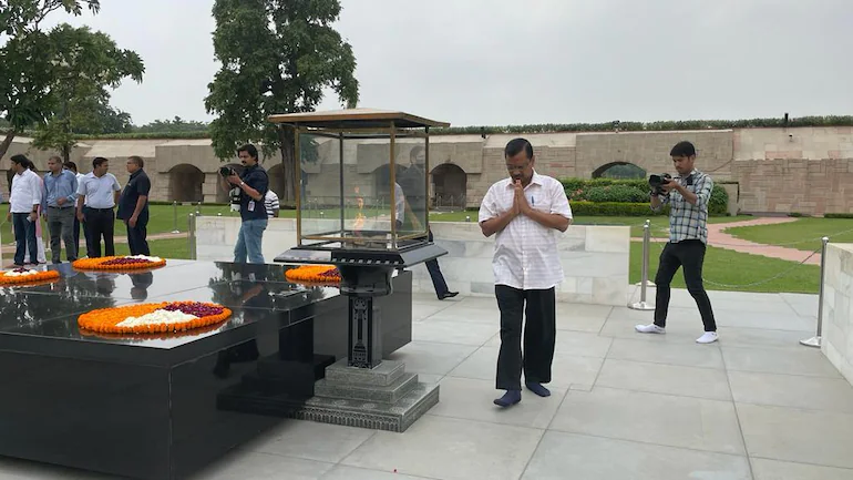 കെജ്രിവാൾ ഗാന്ധി സമാധി സന്ദർശിച്ചു; ഗംഗ ജലമുപയോഗിച്ച് ശുദ്ധീകരിക്കുമെന്ന് ബി.ജെ.പി
