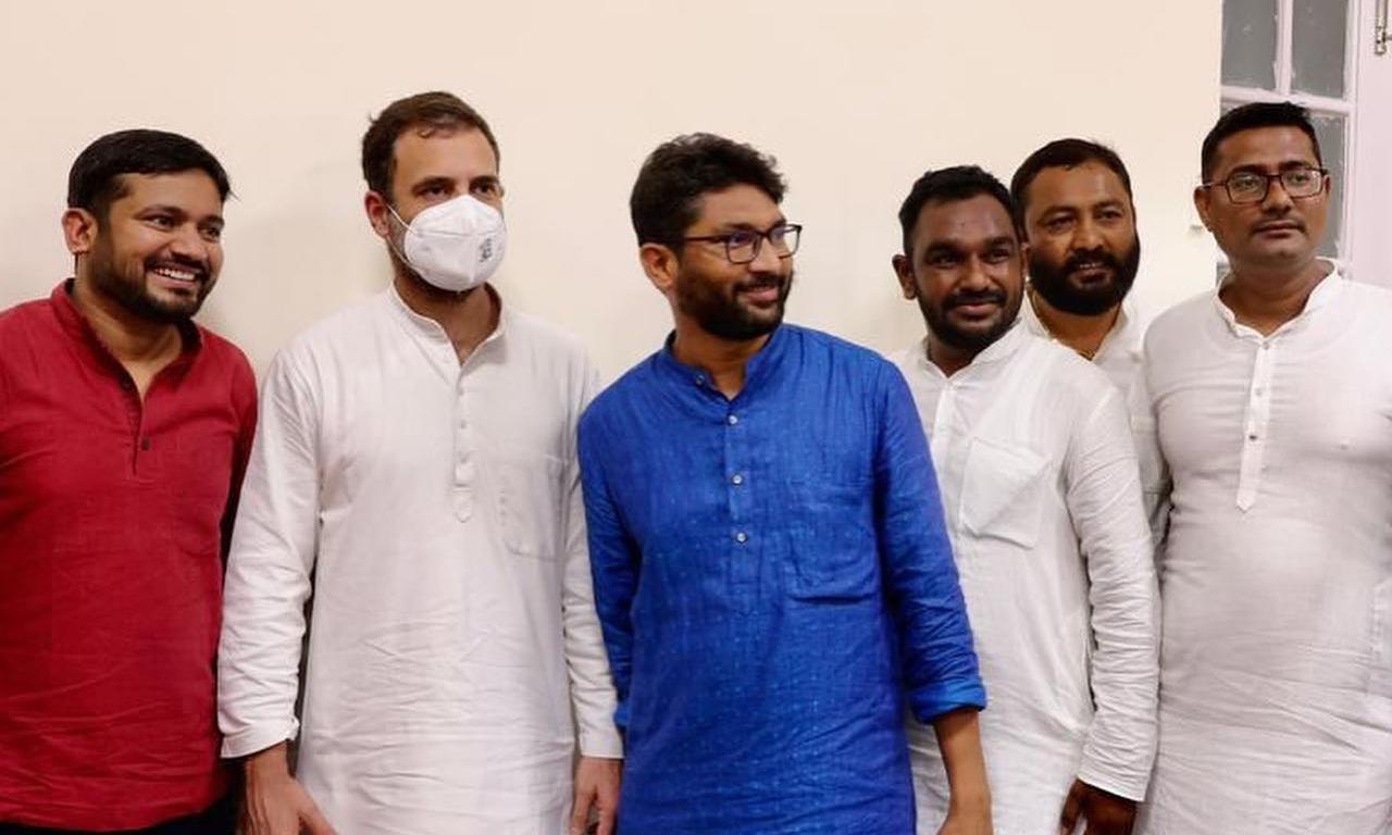 രാഹുലിനൊപ്പം 'കൈ'കോർത്ത് കനയ്യയും മേവാനിയും