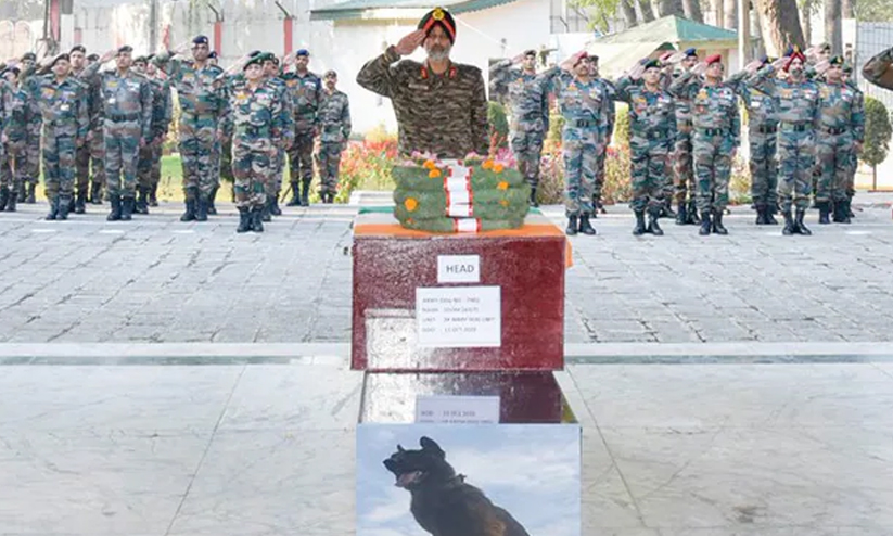 text_fieldsശ്രീനഗർ: തീവ്രവാദികളുമായുണ്ടായ ഏറ്റുമുട്ടലിൽ ഗുരുതര പരിക്കേറ്റ് വീരമൃത്യു വരിച്ച ആർമി ഡോഗ് സൂമിന് അന്ത്യോപചാരങ്ങളോടെ വിട നൽകി സൈന്യം. ശ്രീനഗറിലെ ബദാമി ബാഗ് കന്റോൺമെന്റിലെ ചിനാർ യുദ്ധസ്മാരകത്തിൽ നടന്ന ചടങ്ങിൽ ചിനാർ കോർപ്സ് കമാൻഡർ ലെഫ്. ജനറൽ എ.ഡി.എസ് ഔജ്ലയും മറ്റ് റാങ്കുകളിലെ സൈനികോദ്യോഗസ്ഥരും പങ്കെടുത്തു.