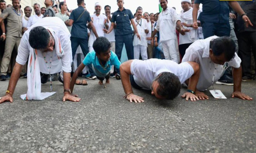 കോൺഗ്രസ് ജനറൽ സെക്രട്ടറി രൺദീപ് സുർജേവാലയാണ് പുഷ്അപ് ചെയ്യുന്ന ചിത്രങ്ങൾ പോസ്റ്റ് ചെയ്തത്. രാഹുൽ ഗാന്ധി, കർണാടക ഘടകം മേധാവി ഡി.കെ ശിവകുമാർ, പാർട്ടി ജനറൽ സെക്രട്ടറി കെ.സി വേണുഗോപാൽ, ഒരു കുട്ടി എന്നിവർ തമ്മിലായിരുന്നു പുഷ്അപ് മത്സരം.