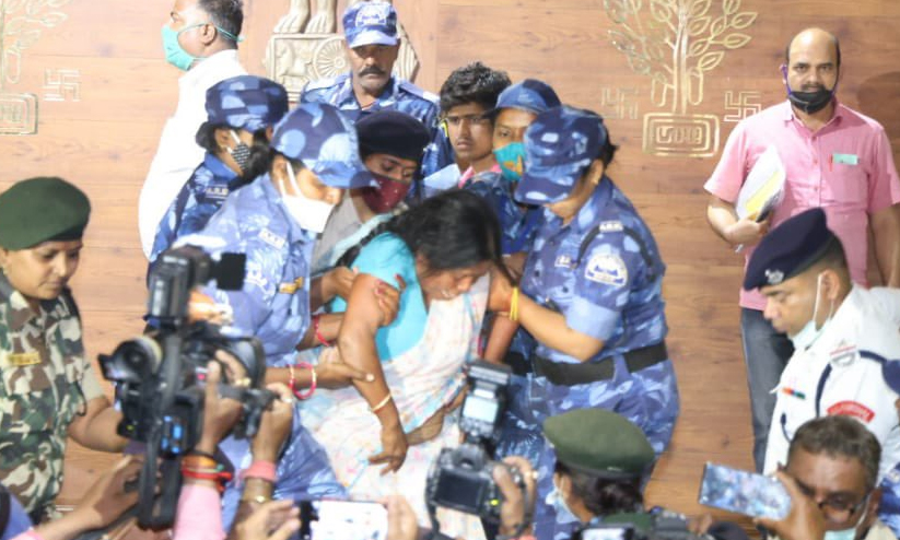 ബിഹാർ നിയമസഭയിൽ എം.എൽ.എമാരെ കൈയേറ്റം ചെയ്യുന്ന സുരക്ഷാ ഉദ്യോഗസ്ഥർ