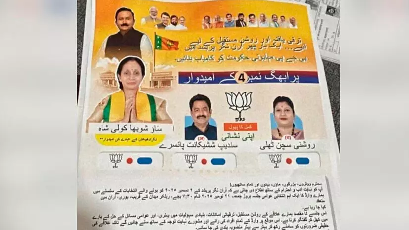 തന്റെ മണ്ഡലത്തിലുള്ള ഉർദു സംസാരിക്കുന്ന മുസ്ലിം ജനവിഭാഗത്തെ സ്വാധീനിക്കുക എന്ന ഉദ്ദേശത്തോടെയാണ് പാർട്ടിയുടെ തെരഞ്ഞെടുപ്പ് വാഗ്ദാനങ്ങളും മറ്റും ഉർദുവിൽ പ്രിന്റ് ചെയ്ത് തെരഞ്ഞെടുപ്പിൽ വോട്ടഭ്യർഥിച്ച് ബി.ജെ.പിയുടെ വനിതാ സ്ഥാനാർഥി രംഗത്തെത്തിയത്. ഇവരുടെ ചിത്രവും ലോക്കൽ നേതാക്കളുടെ ചിത്രങ്ങളും പോസ്റ്ററിൽ പ്രിന്റ് ചെയ്തിട്ടുണ്ട്.