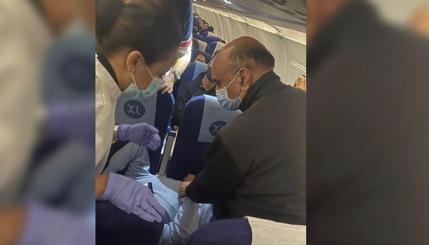 ചൊവ്വാഴ്ച്ച രാത്രിയായിരുന്നു സംഭവം. സഹയാത്രക്കാരൻ അസ്വസ്ഥത പ്രകടിപ്പിക്കുന്നത് ശിശുരോഗ വിദഗ്ധൻ കൂടിയായ കേന്ദ്ര മന്ത്രിയുടെ ശ്രദ്ധയിൽപെടുകയായിരുന്നു. അയാൾ തളർന്ന് സീറ്റിലേക്ക് വീഴുന്നത് കാണുകയും ചെയ്തതോടെ അടുത്തേക്ക് പോയി പരിശോധിച്ചു.