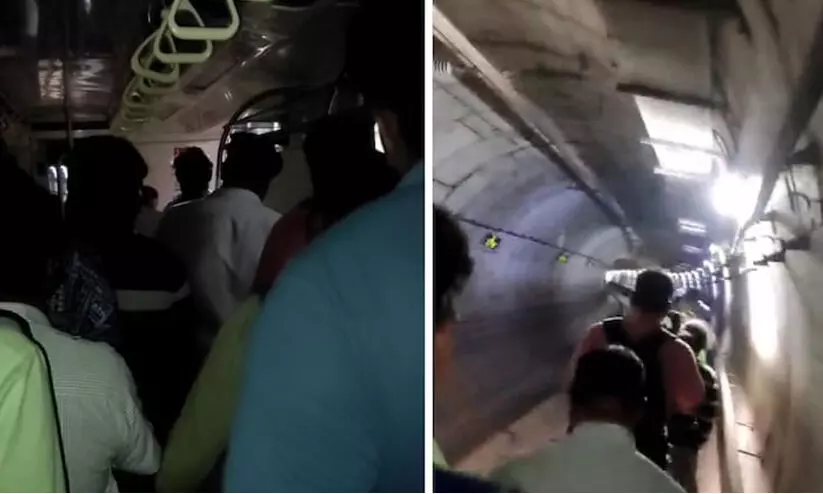 ചെന്നൈ മെട്രോ ട്രെയിൻ സബ് വേയിൽ കുടുങ്ങി; തുരങ്കത്തിലൂടെ നടന്ന് യാത്രക്കാർ