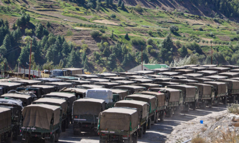 ചൈനയുമായുള്ള സംഘർഷം പുകയുന്നതിനിടെ, അതിർത്തി ലക്ഷ്യമിട്ട് കോൺവോയ് അടിസ്ഥാനത്തിൽ യുദ്ധസാമഗ്രികളുമായി നീങ്ങുന്ന സൈനിക വാഹനങ്ങൾ. ശനിയാഴ്ച മണാലി-ലേ ഹൈവേയിൽനിന്നുള്ള കാഴ്ച - പി.ടി.െഎ